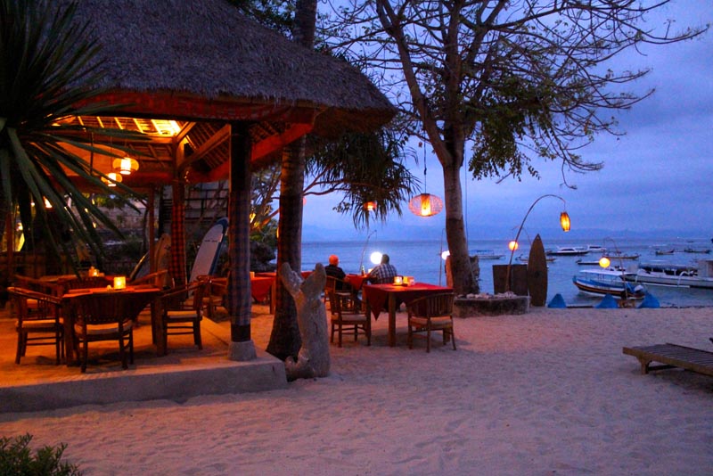 On the night, enjoy the beautiful night by chilling on the bean bags on the beach while having fresh cocktails and ice cold beers
